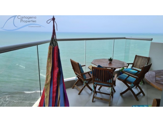 Dispone de zona de ropas independiente con lavadero, lavadora y secadora en torre, además de closet de linos. El apartamento ofrece balcón con vista al Hotel Hilton y a la ciudad amurallada, permitiendo disfrutar del paisaje urbano y turístico de Cartagena.
